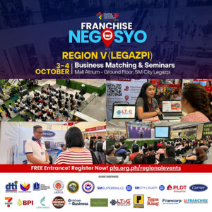 The Philippine Franchise Association (PFA) is all set to bring the final leg of its premier Regional Franchise Show, Franchise Negosyo Para sa Region V (Legazpi), on Friday, Oct. 3, 2025, at the Mall Atrium area of SM City Legazpi.