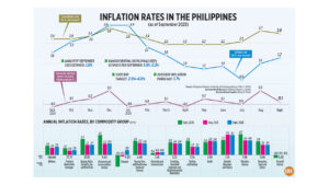 HEADLINE INFLATION accelerated to a six-month high in September, mainly due to costlier fuel and vegetables, but remained below the central bank’s 2-4% target, the Philippine Statistics Authority (PSA) said on Tuesday. Read the full story.