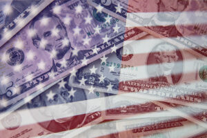 United States dollar banknotes and an American flag displayed on a laptop screen are seen in this illustration photo taken in Poland on Dec. 26, 2022. — JAKUB PORZYCKI/NURPHOTO VIA CONNECT