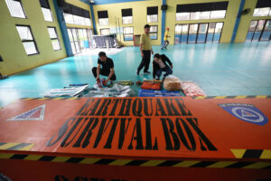 QUEZON CITY High School (QCHS) Disaster Risk Reduction and Management Council and faculty members checked the various equipment in the Earthquake Survival Box provided by the local government inside the QCHS gym as part of their disaster preparedness, Oct. 14. — PHILIPPINE STAR/MIGUEL DE GUZMAN