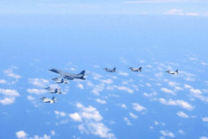 FORMATION flight of the Philippine Air Force’s FA-50 aircraft and US B-1B bomber aircraft, F16 aircraft and F18 aircraft during a bilateral air patrol over the South China Sea on April 29. — PHILIPPINE AIR FORCE