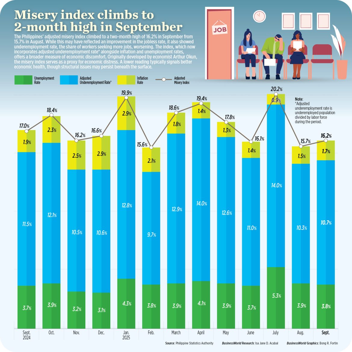 Misery index climbs to 2-month high in September – BusinessWorld Online