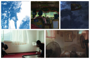 This time, there is a straightforward conversation. The voice of a young man relays a harrowing dream to his father, whose experiences are unknown to us, but may possibly be a connecting thread in Indonesia’s history of restless energy, protest, rage, and hope. We see photographs of these events, rendered in blue cyanotype. We hear a student activist’s impassioned protest poem.
