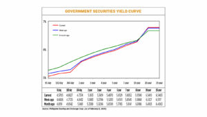 GS yields, which move opposite to prices, declined by an average of 4.32 basis points (bps) week on week, based on the PHP Bloomberg Valuation Service Reference Rates as of Feb. 6 published on the Philippine Dealing System’s website.