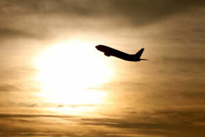 A PLANE is seen during sunrise in this photo. — REUTERS/MICHAELA REHLE