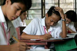 Students answer test questions at a state high school in Manila. — REUTERS